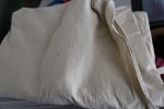4. Wash, dry and iron the canvas drop cloth (or any other heavy weight fabric you choose.) Cut it larger than the size board you’re making- I used pinking shears to prevent frayed edges, but also not necessary.
